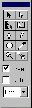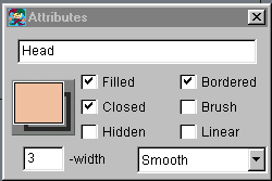 When pivot point is edited: "Sel" button - shape selection. Shape can be selected by clicking near it's regular point or pivot. "Poly" - basic tool for shape creation. Click - to put corner point. Press and drag - to put smooth point, "+Ctrl" - to modify point to corner, "+Shift" - to modify point back to smooth. Right click - to finish shape. Pivot is allocated between first and last regular points. "Draw" - freehand drawing. Right click - to finish shape. Don't use this tool more then necessary. "Oval" - oval drawing. "+Shift" - roind. "+Ctrl" - from the center. "Copy", "Cut", "Paste" - usual manipulation with shapes. "Zoom" - select zoom for main window. Click or drag. "Attach" - build hierarchy tree. First (odd) click - to select a child shape, second (even) - a mother shape. Right click - finish. For points: "Ins." - insert point after selected one. "Del." - delete selected point. For mode: "Rubber" - turn on nonlinear shape edition for pivot point. Needs experiments to be familiar with it, but allows to achieve expression animation. |